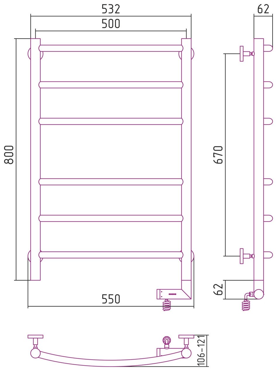 Полотенцесушитель электрический Сунержа Галант 2.0 800х500 с блоком управления справа, 00-5201-8050