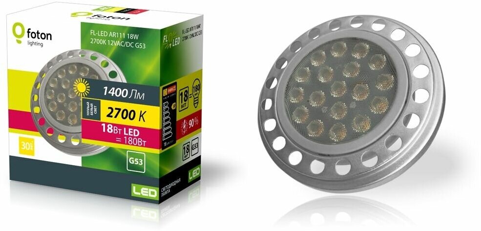 Светодиодная лампа Foton Lighting Foton FL-LED AR111 18W 30° 2700K 12VAC/DC G53 d111x55 1400lm - лампа