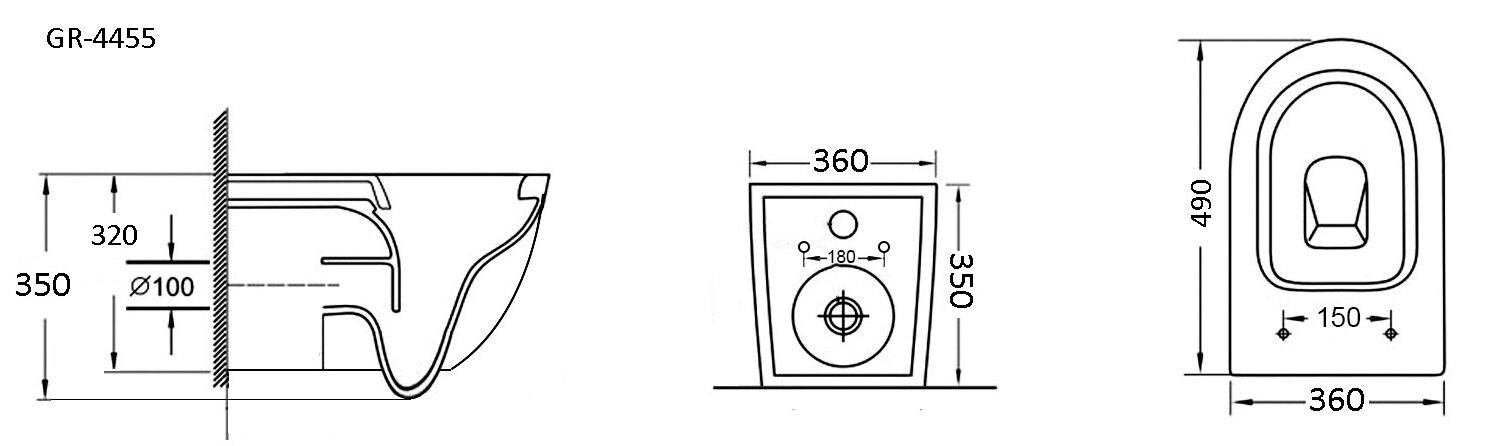 Чаша унитаза подвесная Grossman GR-4455 с горизонтальным выпуском