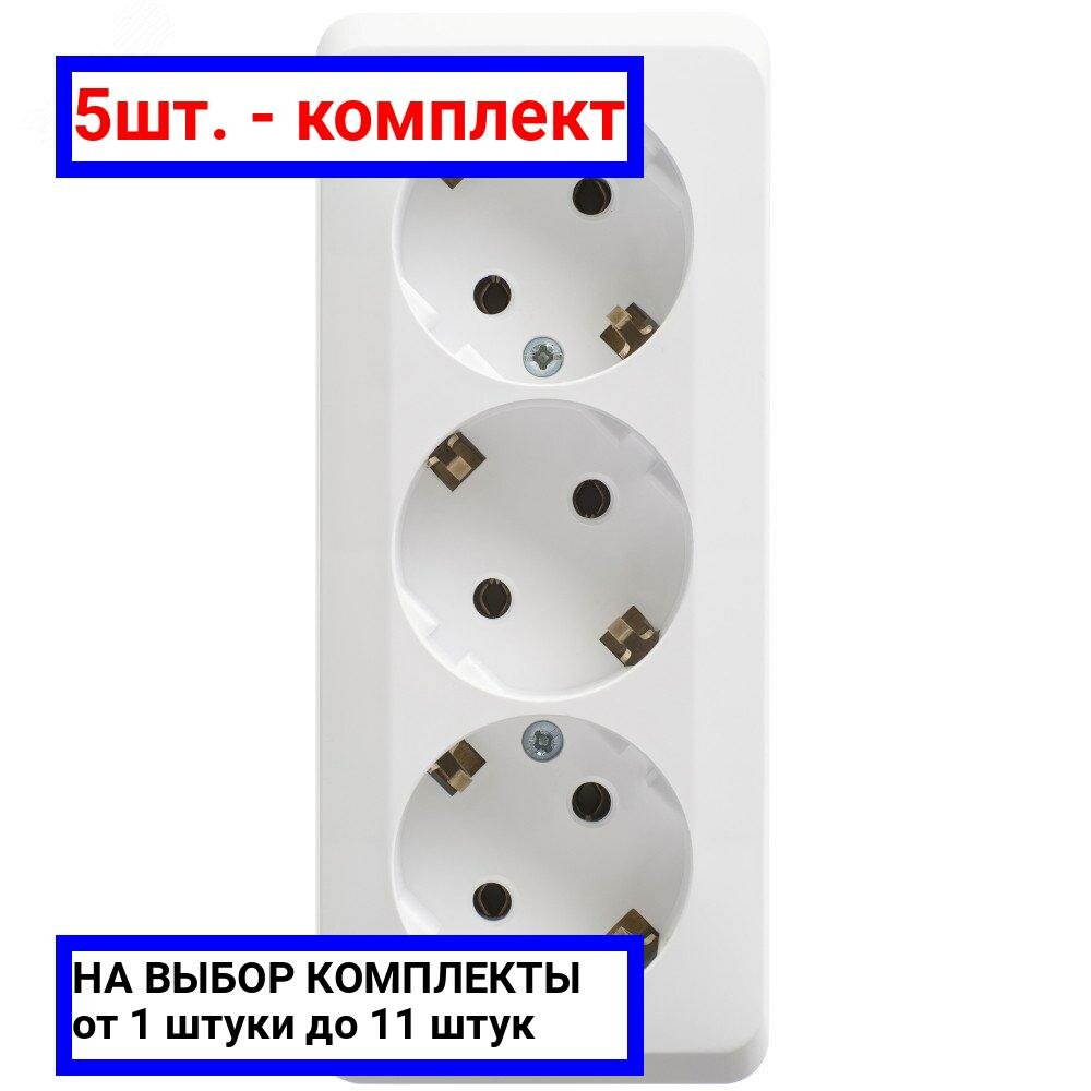 Розетка Этюд 16А 250B 5шт с заземлением без шторок тройная Schneider Electric/Systeme Electric в сборе открытая установка белый PA16-011B