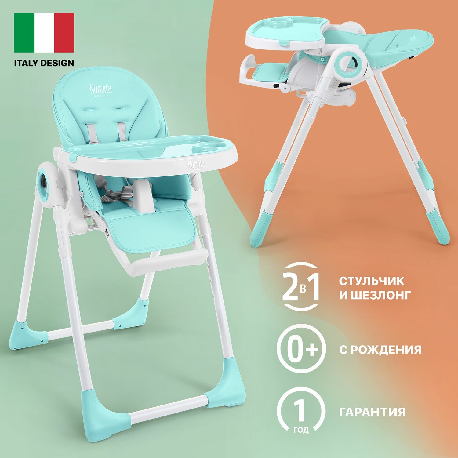 Стульчик для кормления Nuovita Lembo (Turchese, Bianco/Бирюзовый, Белый)