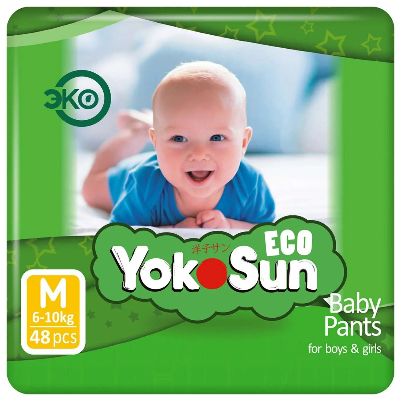 Детские подгузники-трусики YokoSun Eco размер М (6-10 кг), 48 шт.