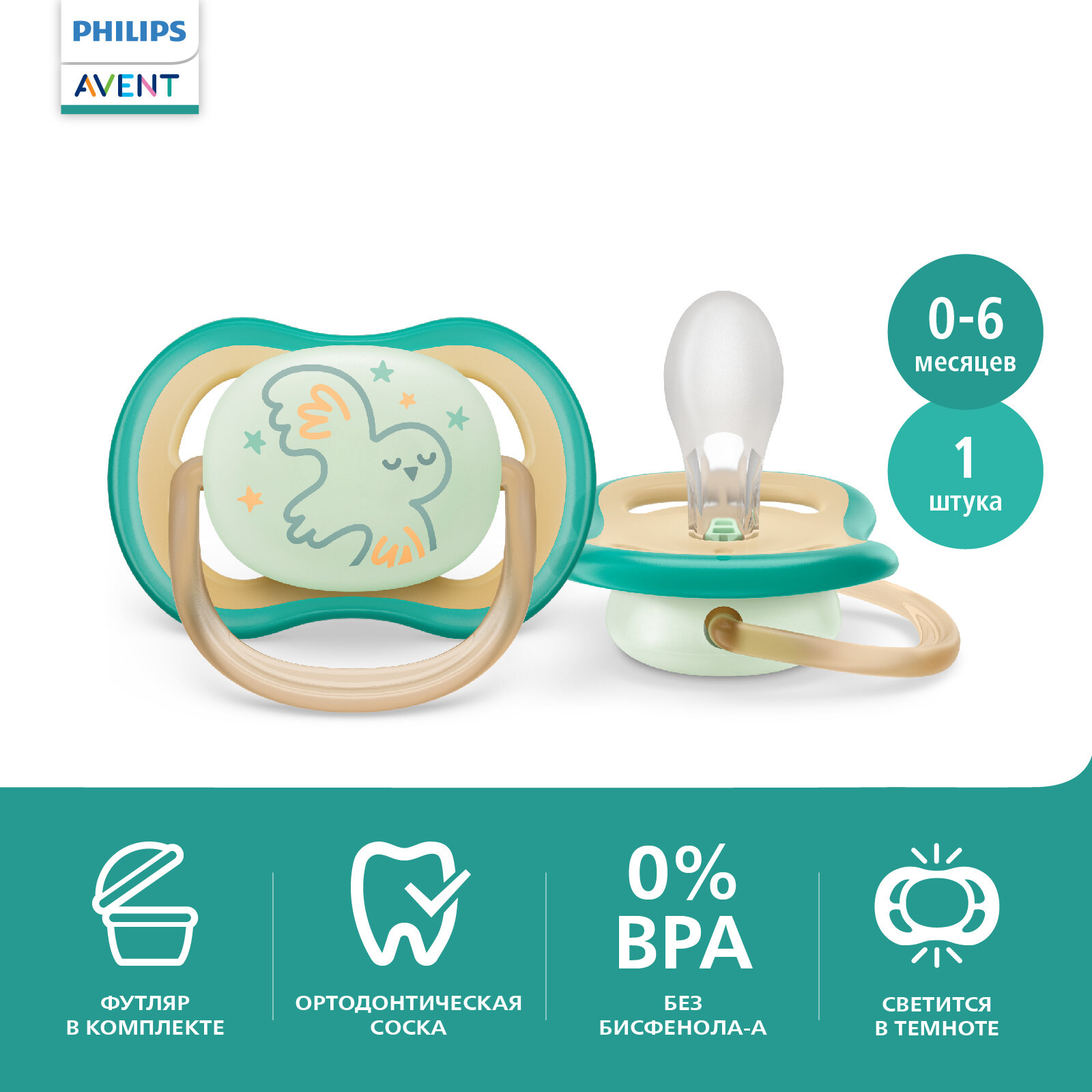 Соска-пустышка светящаяся Philips Avent ultra air night SCF376/01 с футляром для хранения и стерилиз .