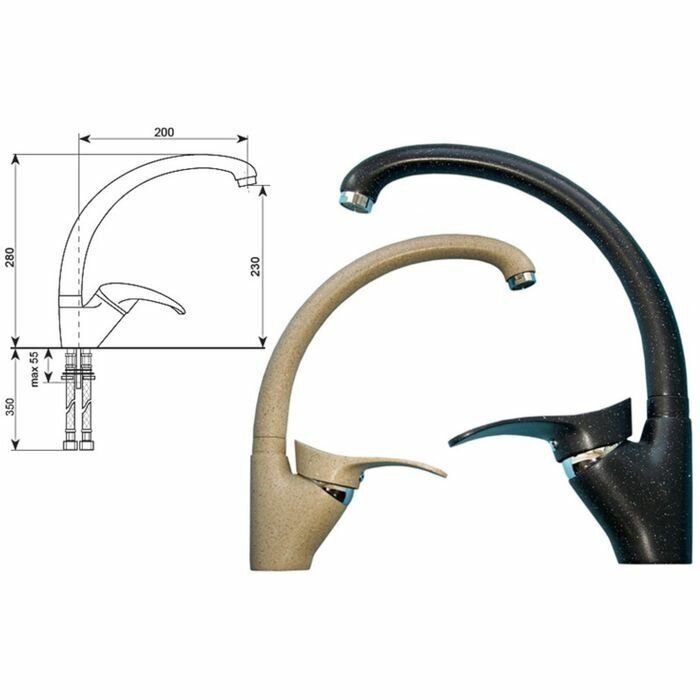 Смеситель Ulgran U-001 (328) бежевый, для кухонной мойки 7 277 ₽ Подробнее
