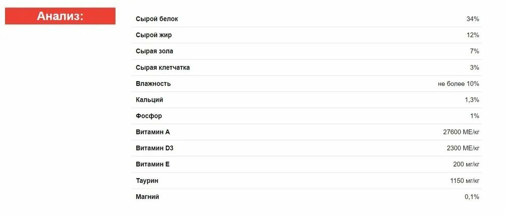 | Тип | сухой корм |