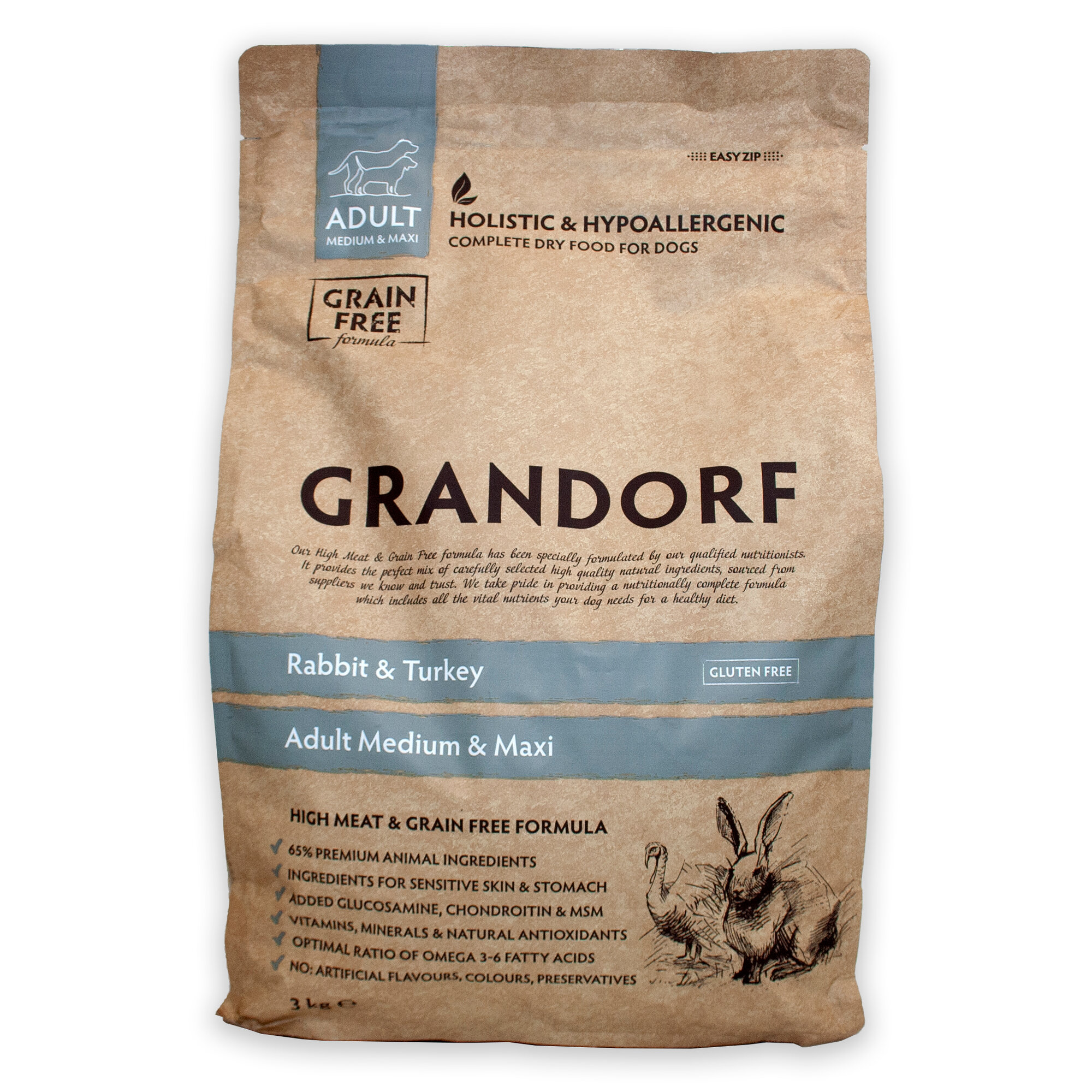 Сухой корм Grandorf для собак средних и крупных пород, кролик/индейка, 3 кг
