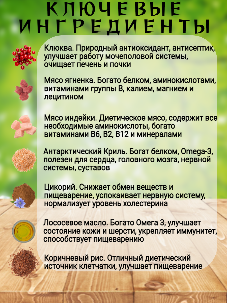 | Ингредиенты | рыба, картофель, горох 15.5%, семена льна, яблоки, комплекс трав |