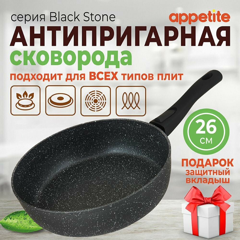 Сковорода Appetite Black Stone 26 см со съемной ручкой