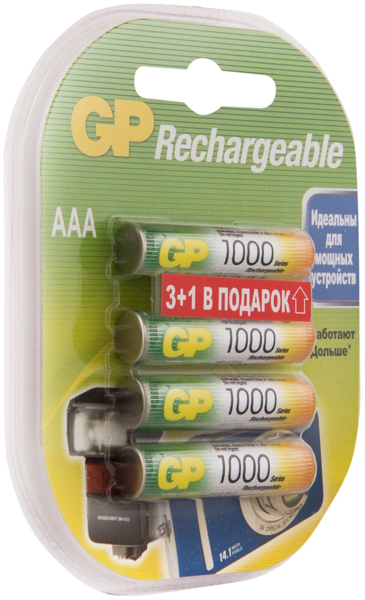 Аккумулятор Ni-Mh 1000 мА·ч 1.2 В GP Rechargeable 1000 Series AAA, в упаковке: 4 шт.