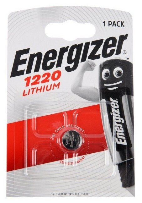 Лучшие цены. Батарейка типа ENERGIZER CR1220 с рабочим напряжением 3 В, отлично подходит для обеспечения энергией целого ряда компактных электронных устройств, таких как пульты дистанционного управления, автомобильные сигнализации и ключи доступа, фонарики, электронные замки, наручные часы, калькуляторы, портативные коммуникаторы, детские игрушки. Литиевая батарея безопасна и эффективна, при этом она обладает низким показателем саморазряда. Магазины в вашем городе.