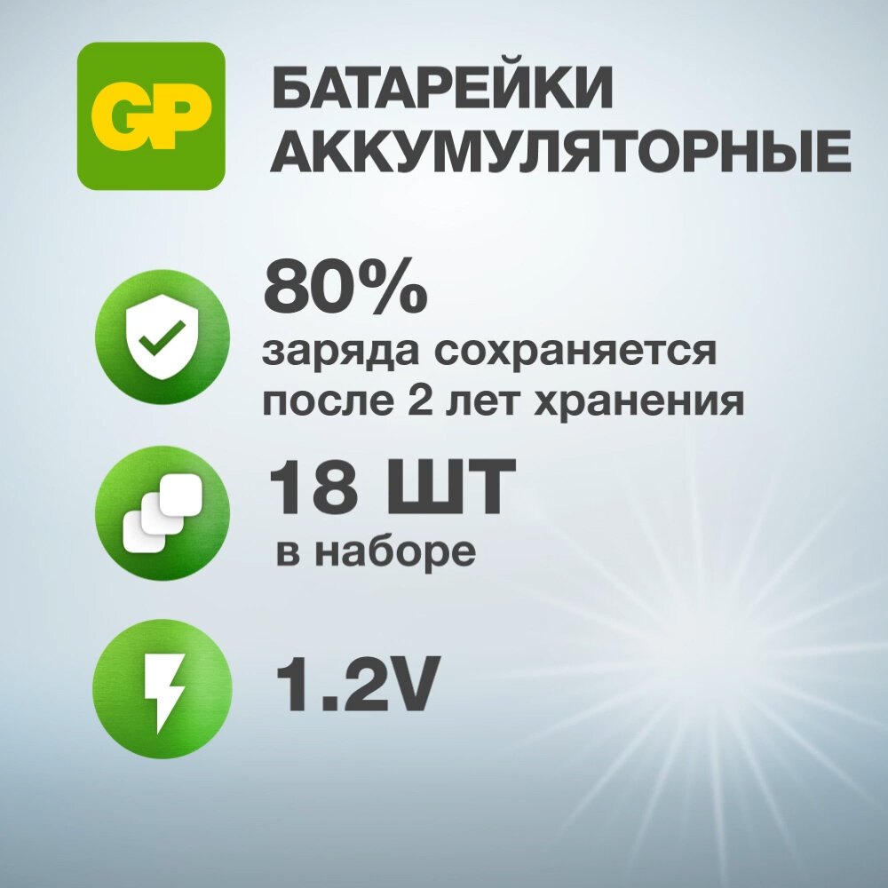Аккумуляторы и батарейки Аккумуляторная батарейка GP, типоразмер АА (HR6) 2700 мАч, в наборе 18 шт.