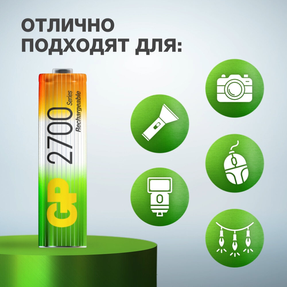 Аккумулятор Ni-Mh 2700 мА·ч 1.2 В GP Rechargeable 2700 Series AA, в упаковке: 4 шт.