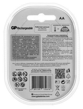 Аккумуляторы и батарейки Аккумулятор GP, Ni-Mh, AA, HR6-4BL, 1.2В, 2700 мАч, блистер, 4 шт.