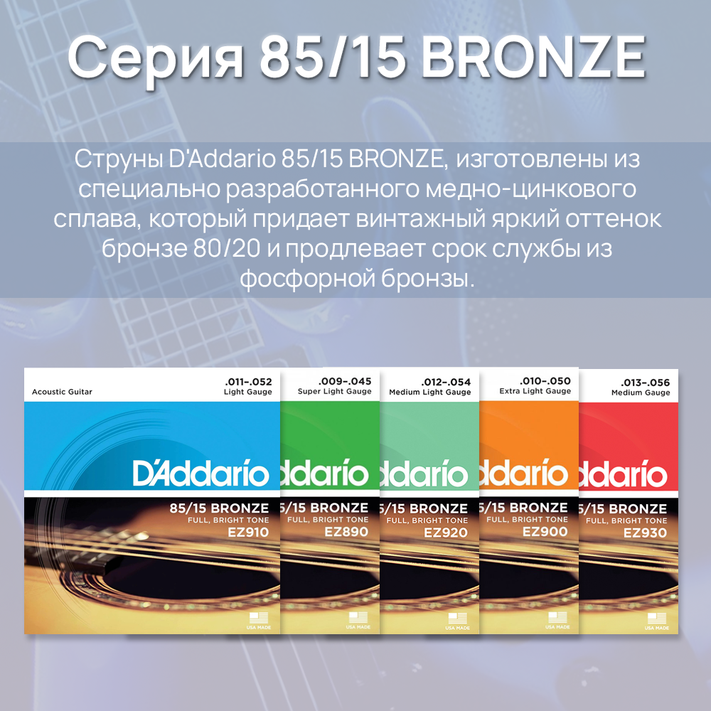 EZ910 AMERICAN BRONZE 85/15 Струны для акустической гитары Light 11-52 D`Addario