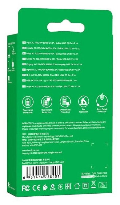 Зарядное устройство Borofone Ba49a Vast power single port charger(EU), черный 6931474728401 .