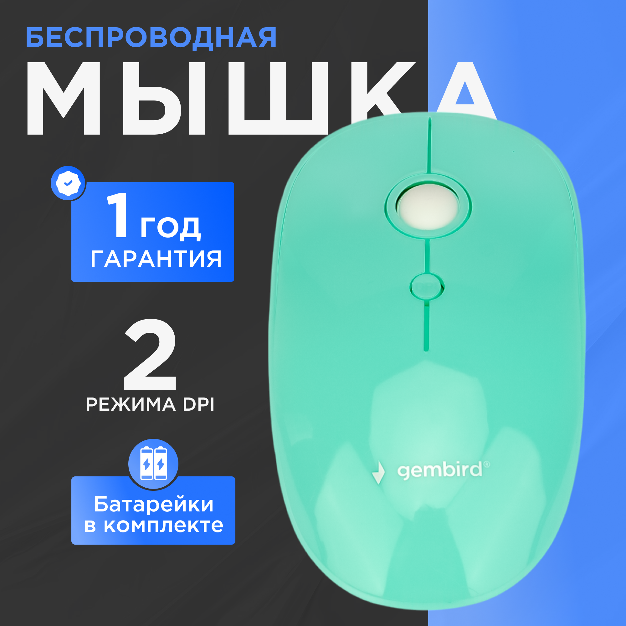 Мышь беспроводная Gembird MUSW-395, 2.4 ГГц, 2 кнопки + колесо кнопка, 1000DPI мятный глянец