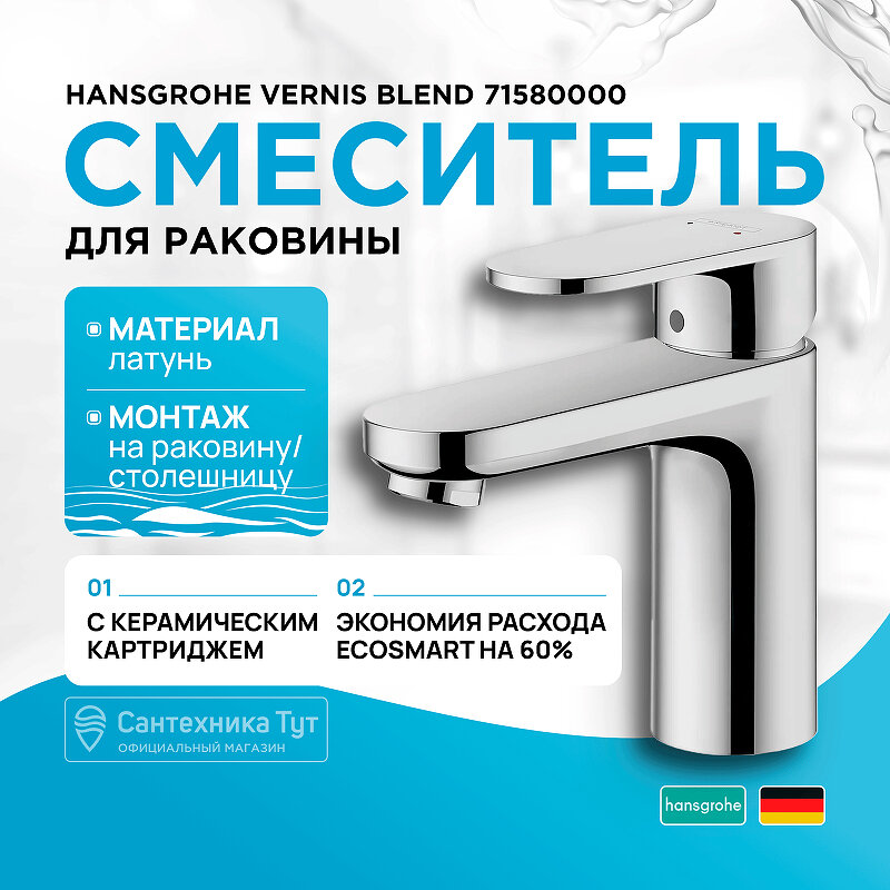 Смеситель для раковины hansgrohe Vernis Blend 71580000, 100 без сливного набора, хром 7 760 ₽ Подробнее