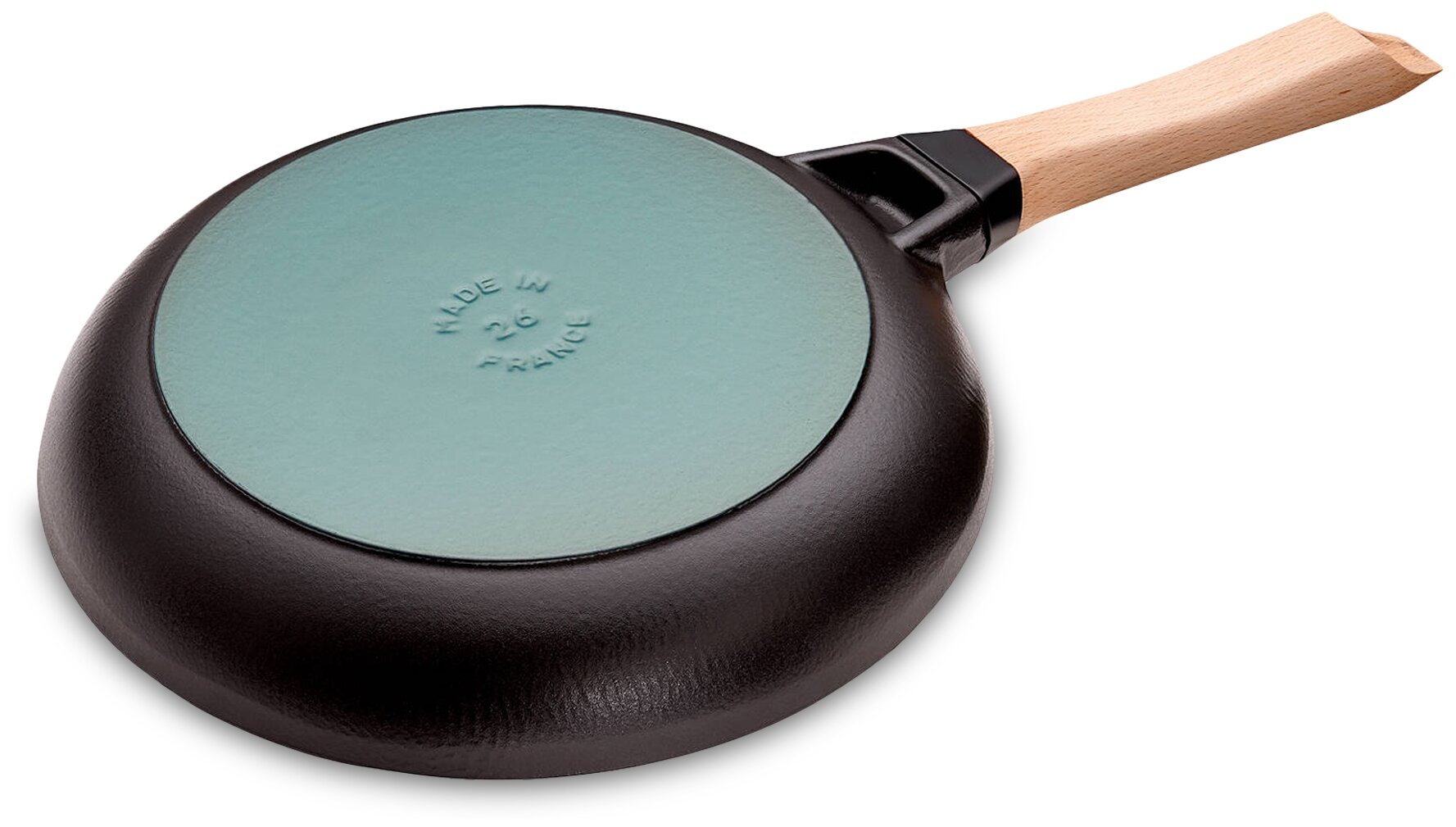 Сковородки Сковорода Staub круглая, 26 см, с деревянной ручкой, черная
