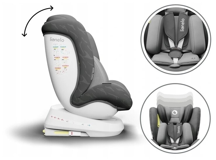Автокресло детское Lionelo LO-Bastiaan One Grey Stone Black isofix поворотное 0/1/2/3 (0-36 кг)