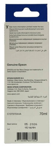 115 Контейнер с чернилами Epson C13T07D44A, 70 мл, 2300 к., желтый