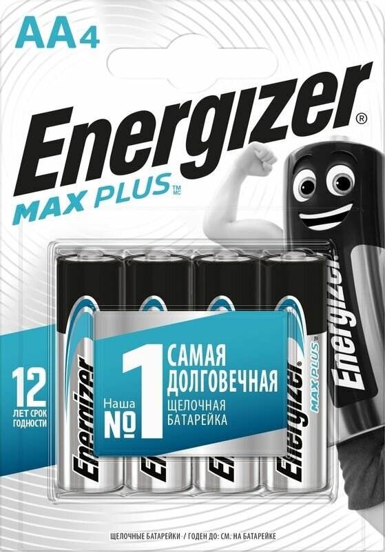 Батарейка AA щелочная Energizer LR6-4BL MAX Plus (Maximum) в блистере 4шт.