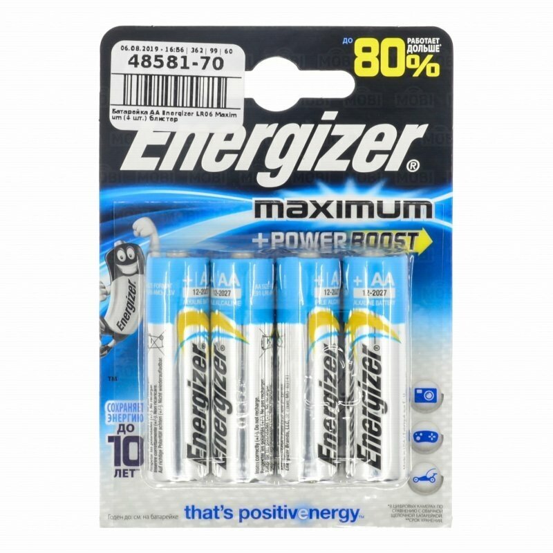 Батарейка Energizer Maximum+Power Boost LR6 BL4, 4шт