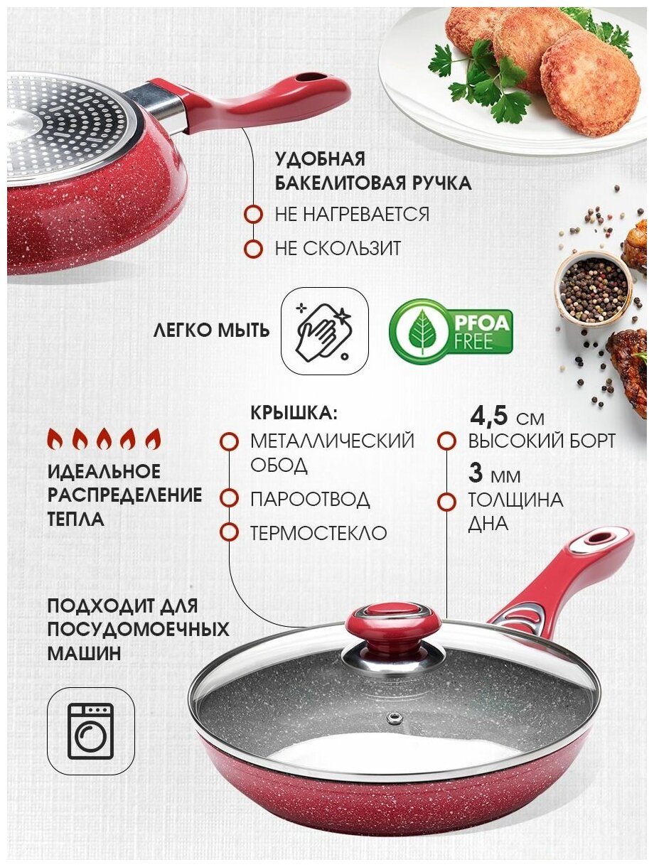 | Антипригарное покрытие | каменное (мрамор, гранит) |