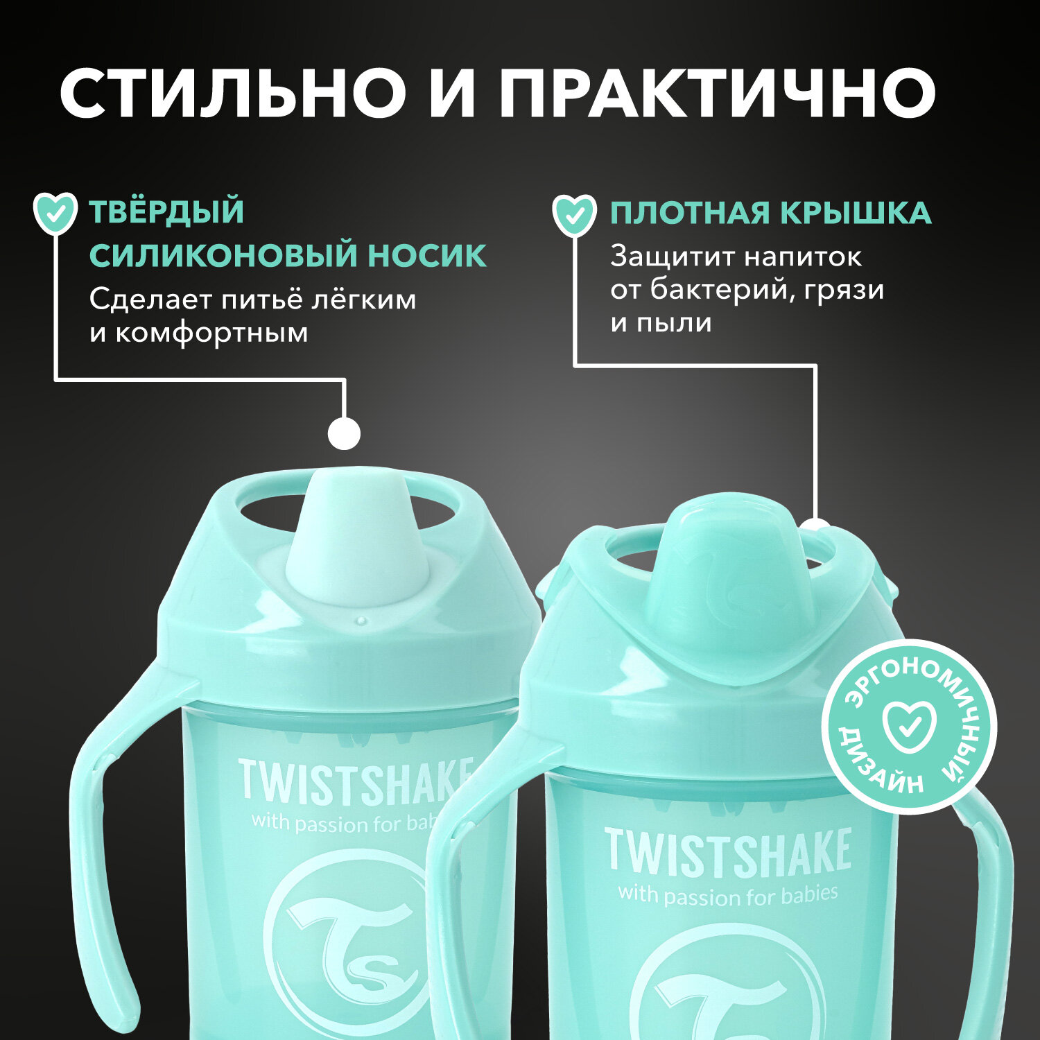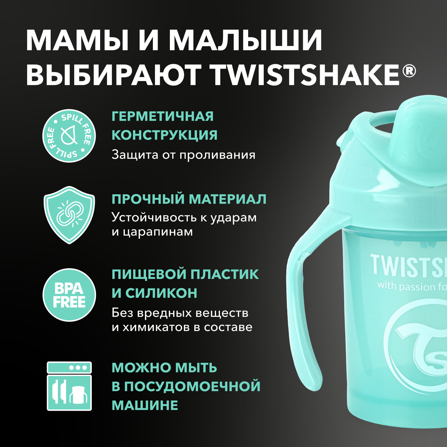 Поильник-непроливайка Twistshake 230мл с 4месяцев Чёрный