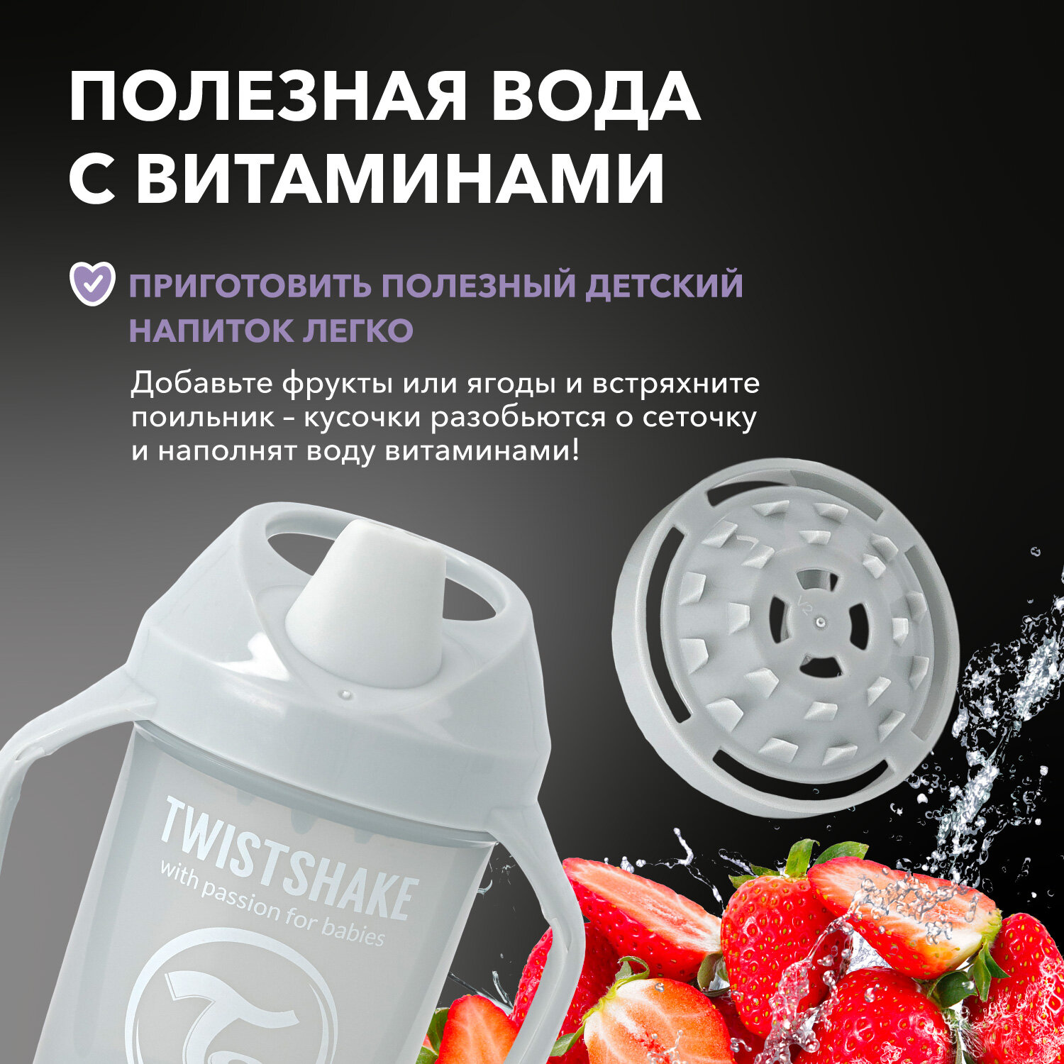 Поильник-непроливайка Twistshake 230мл с 4месяцев Серый