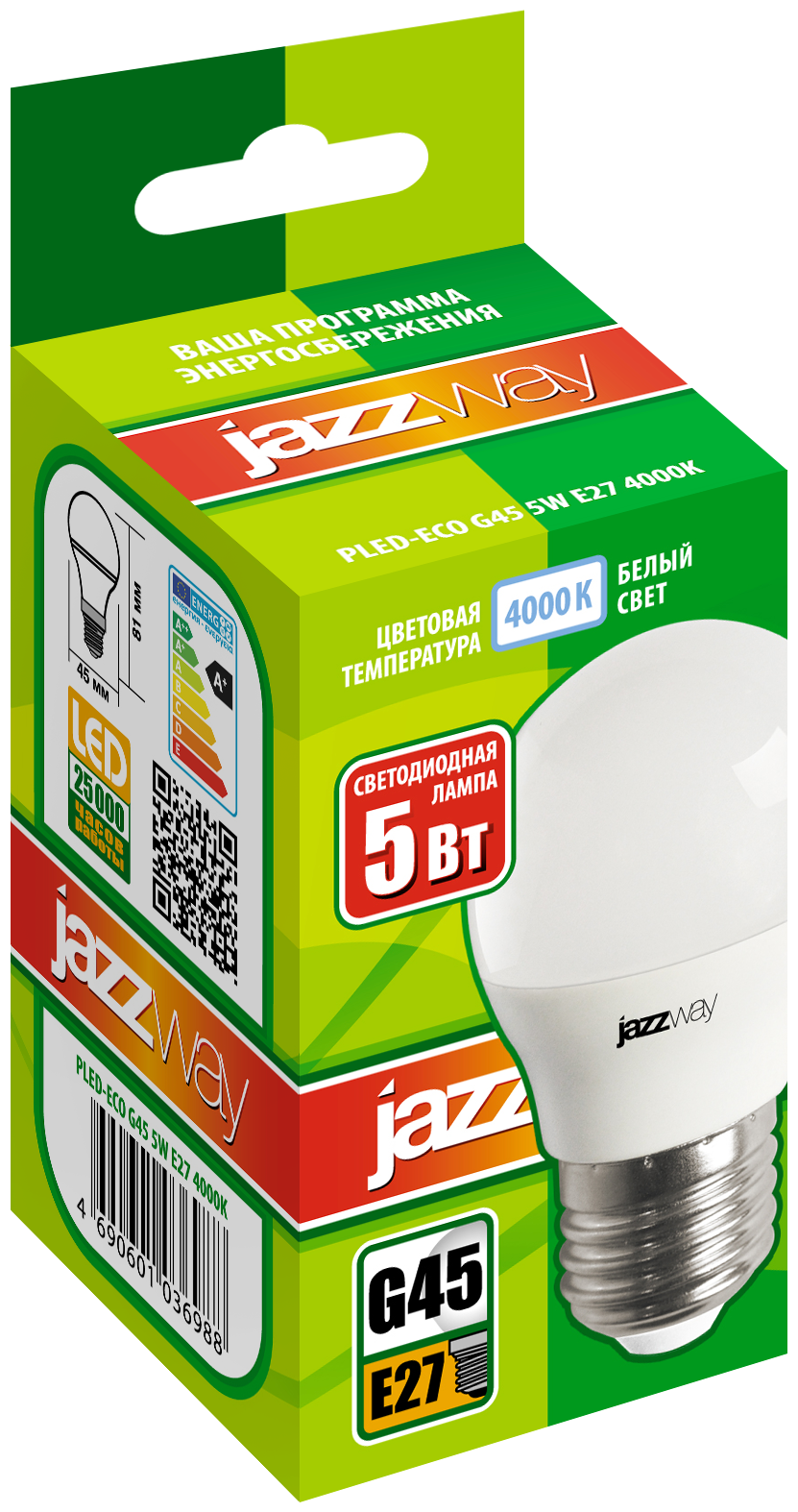 Лампа светодиодная jazzway 1036988A, E27, G45, 5 Вт, 4000 К