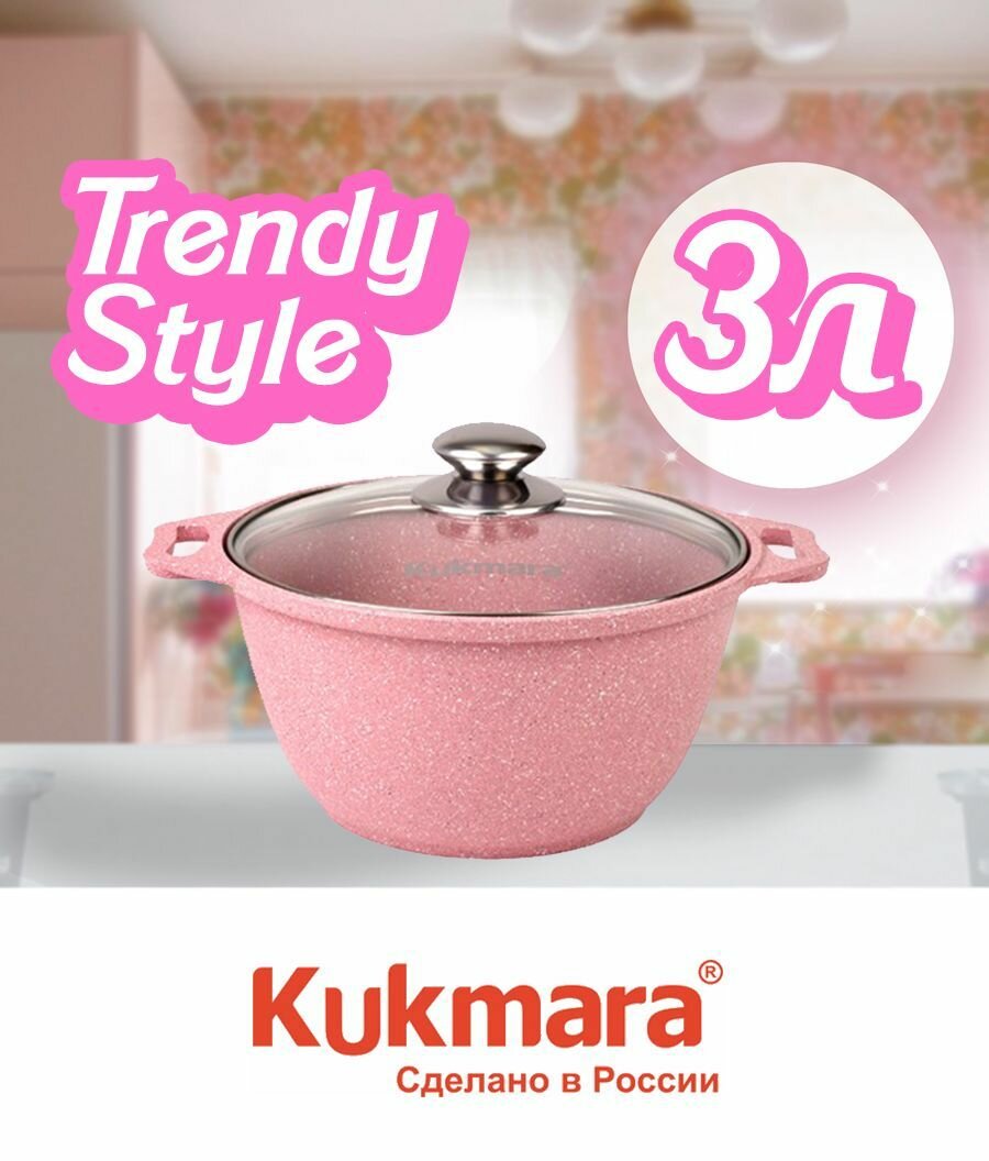 Кастрюли Кастрюля 3л Kukmara Кукмара стеклянная крышка Антипригарное покрытие Trendy style цвет rose к31tsr