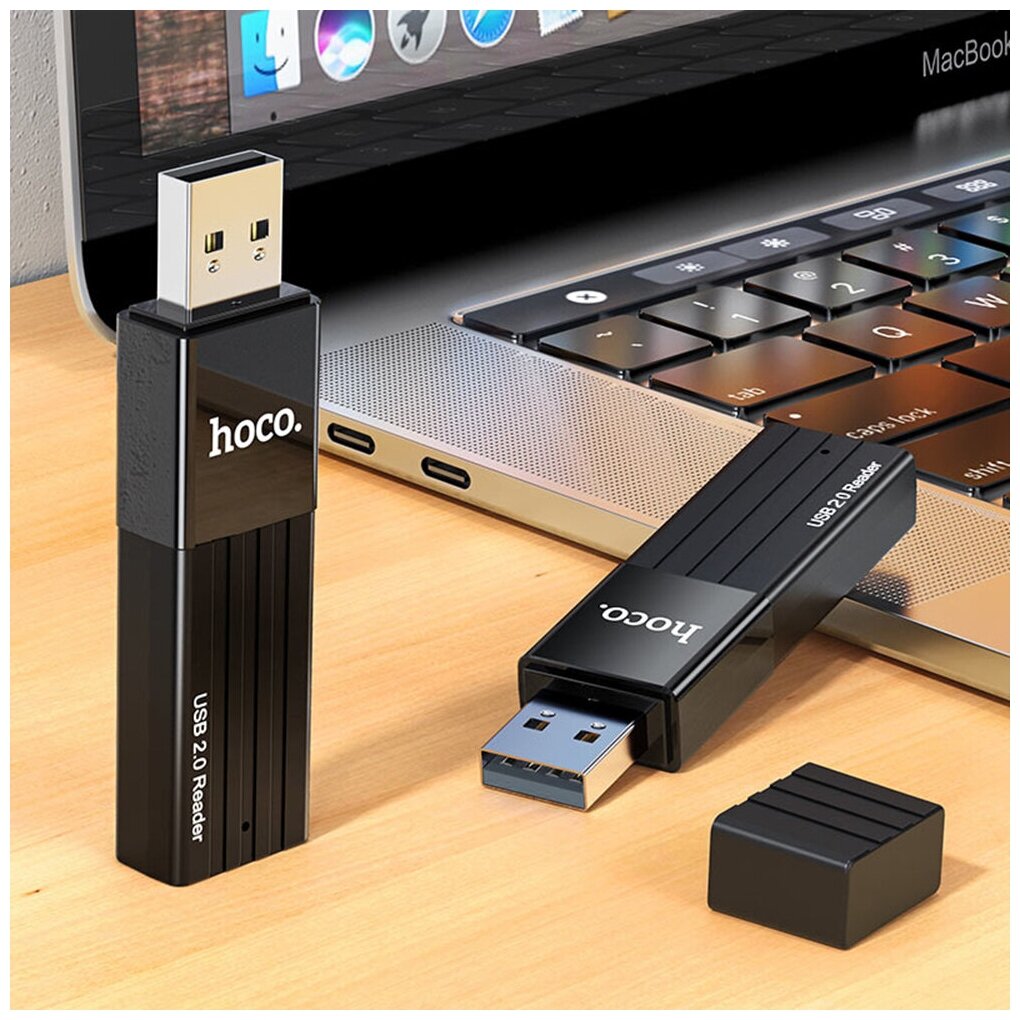 Переходник HOCO HB20 USB Картридер, для SD и Micro SD, черный