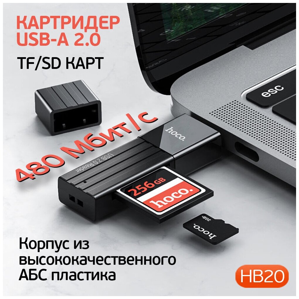 Картридер Hoco HB20 Mindful 2 in 1 USB 2.0/480Mbps, USB-А на microSD, SD (Black) 444 ₽ Подробнее