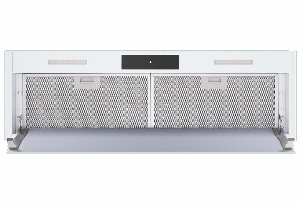 Лучшие цены. Особенности: Ультрасовременная встраиваемая кухонная вытяжка шириной 90 см - это уникальное решение для кухни очень большой площади (до 50 кв. м). Модель монтируется в навесной шкаф над поверхностью плиты. Работает в двух режимах – отвода (при подключении к системе вентиляции) и рециркуляции (при использовании сменного угольного фильтра). Корпус изготовлен из нержавеющей стали. На фасаде белого цвета находится откидная панель, сделанная из закаленного глянцевого стекла. Магазины в вашем городе.