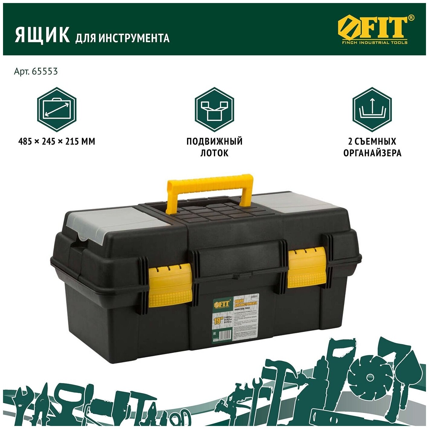 Ящик для инструмента пластиковый 19'' (48.5 х 24.5 х 21.5 см) | код 65553 | FIT (1 шт.)
