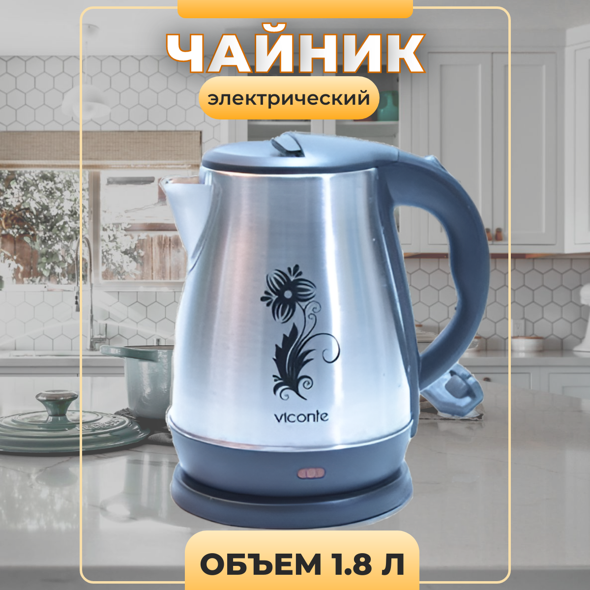 Чайник электрический VICONTE VC-3251 1,8 л, 2200 Вт, нержавеющая сталь