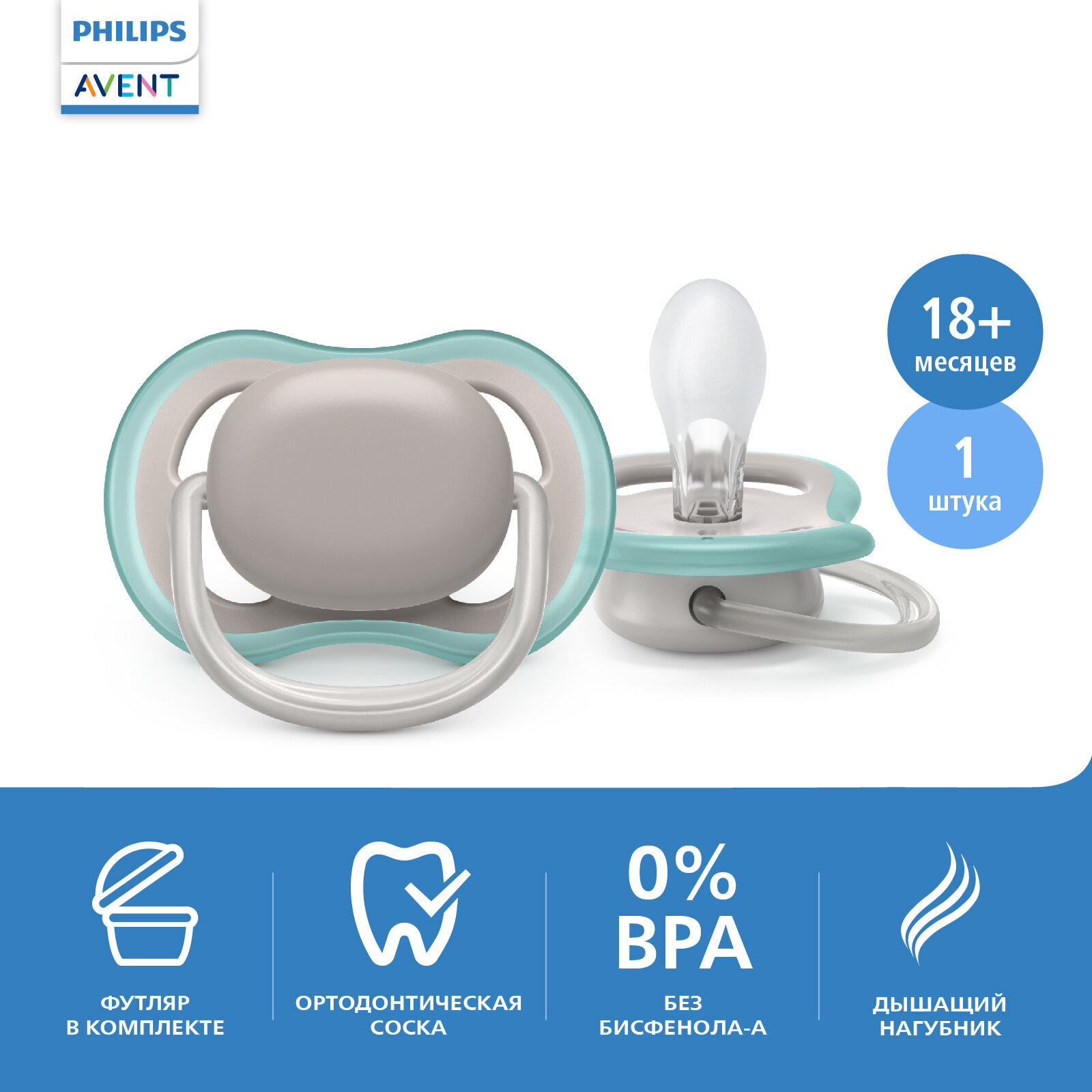 Соски и пустышки Ultra Air с 18 мес. SCF354/0 с футляром для хранения и стерилизации Серый