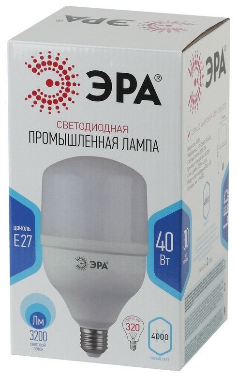Лампа светодиодная 40(320)W Эра Е-27 3200Лм 4000К холодный свет, промышленная Б0027005