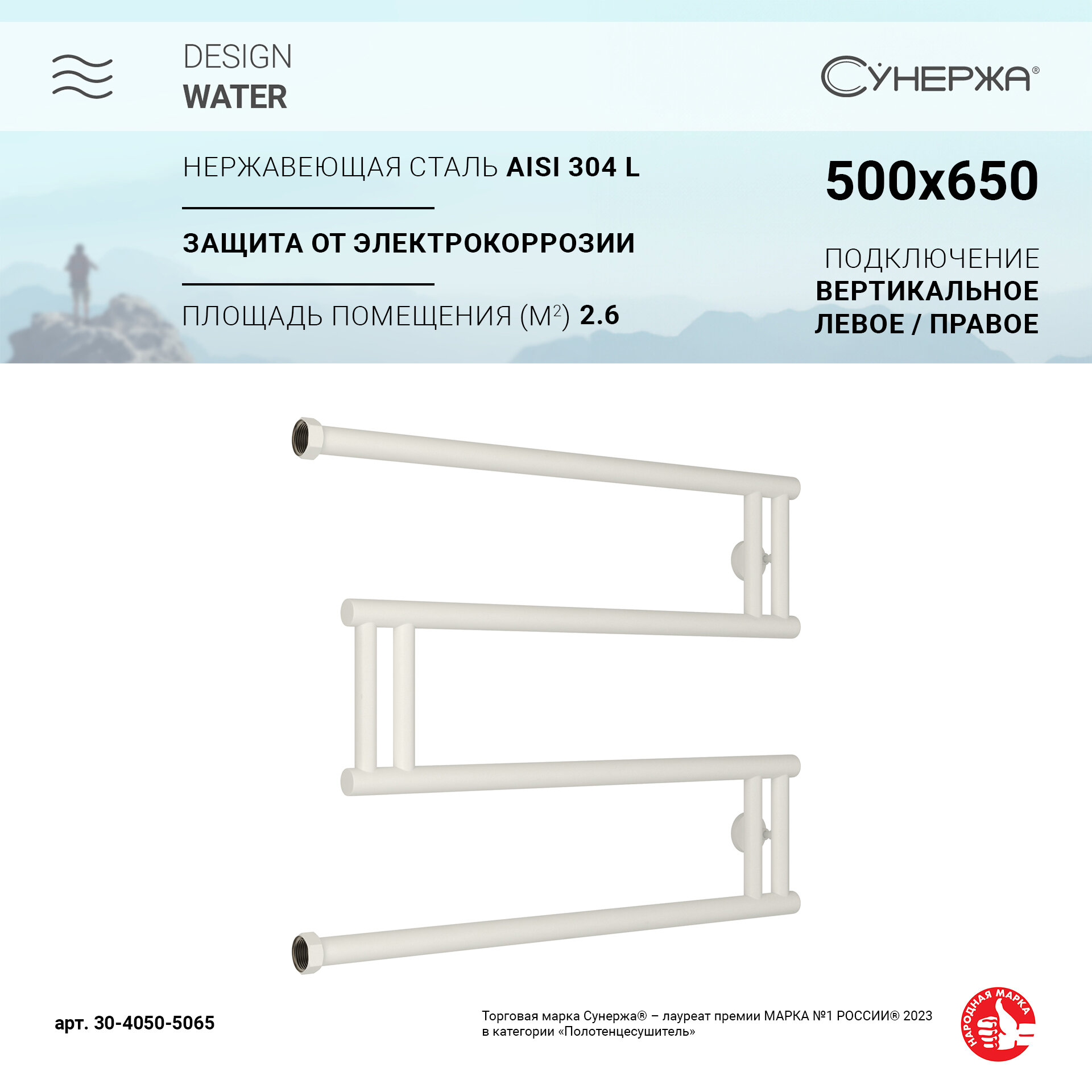Полотенцесушители Водяной полотенцесушитель Сунержа High-Tech model M+ 500х650 матовый белый
