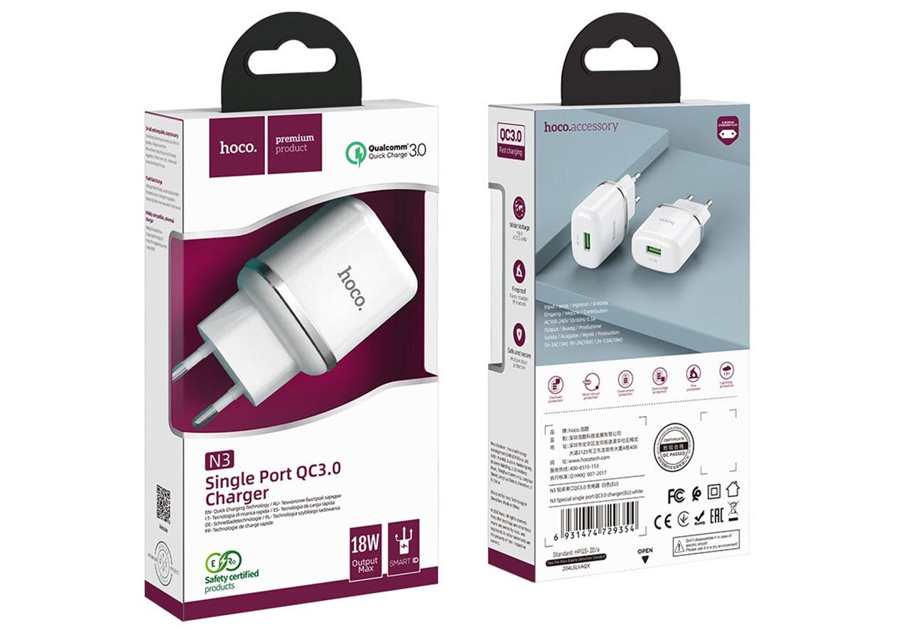 Зарядное устройство Блок питания HOCO N3 Special QC3.0, 18W, один порт USB, 5V, 3.0A, белый