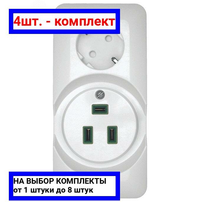 Плиты 4шт. - Прима Розетка наружная комбинированная белая / Systeme Electric; арт. RA32-211R-B; оригинал / - комплект 4шт