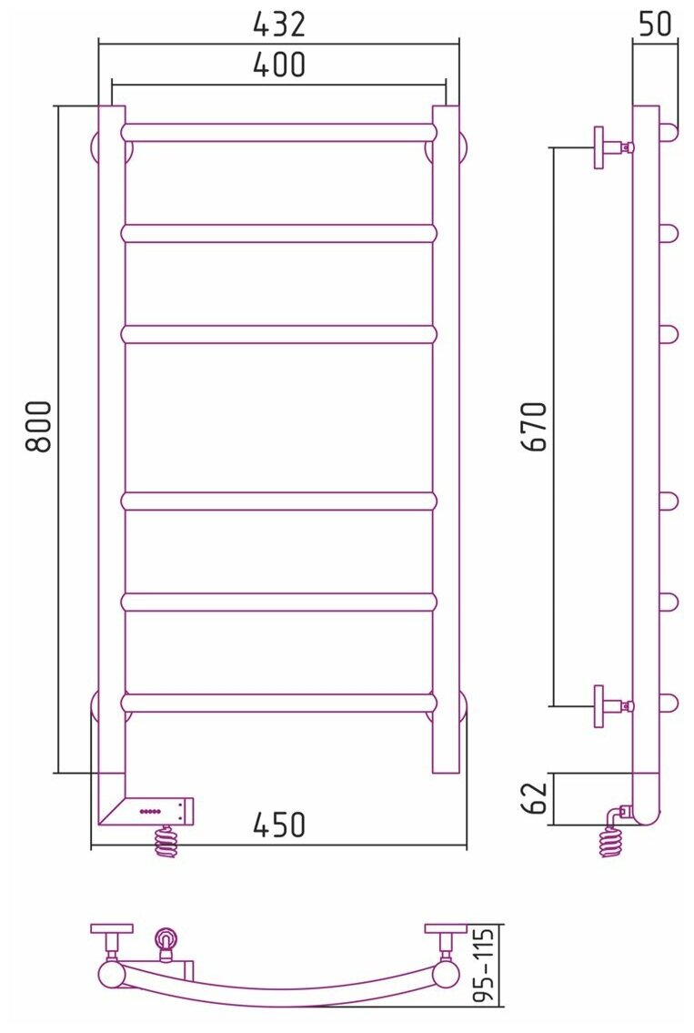 Электрический полотенцесушитель Сунержа Галант 2.0 800x400 лтэн без покрытия