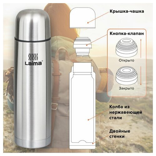 Термос Laima, классический, с узким горлом, 1 л, нержавеющая сталь