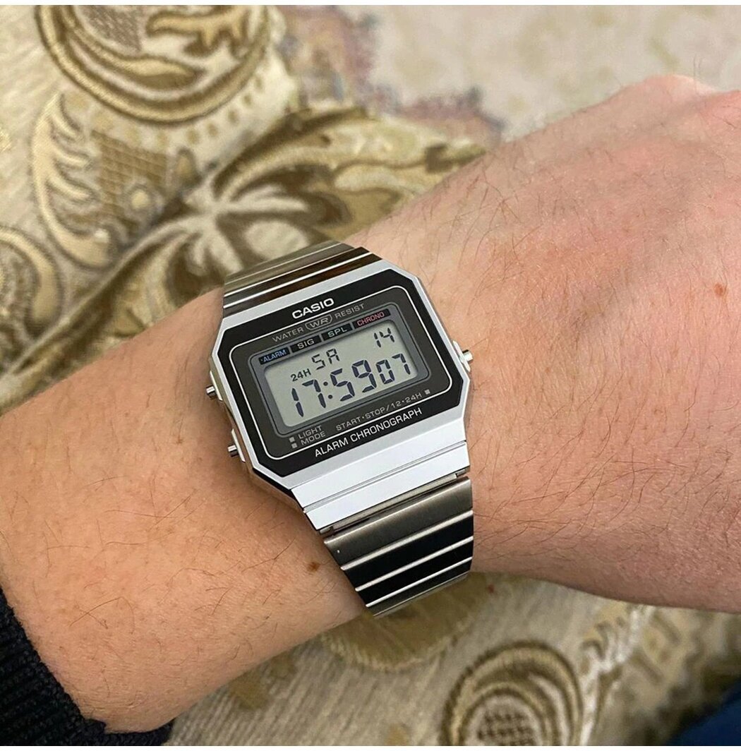 Наручные часы CASIO A700W-1A кварцевые, будильник, секундомер, водонепроницаемые, подсветка дисплея, серебристый