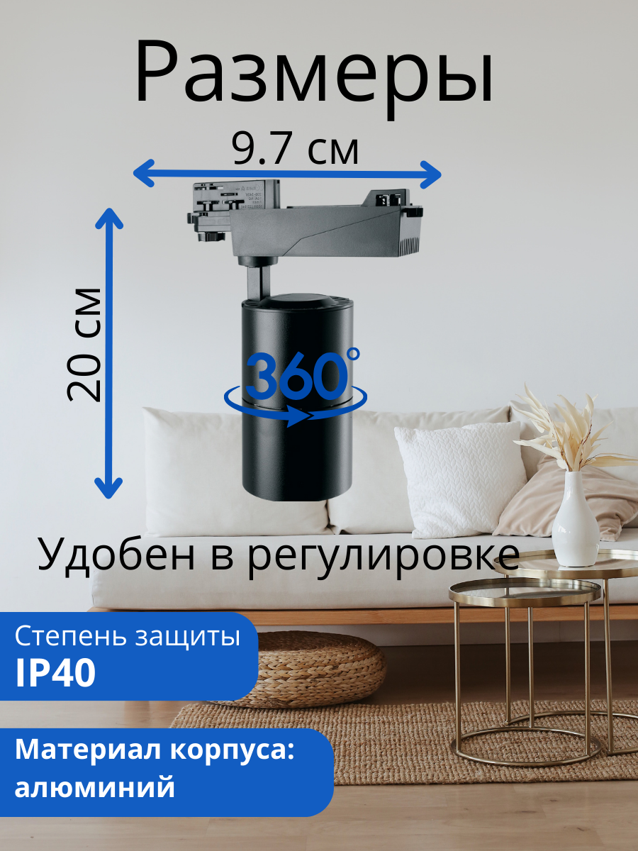 Светильник трековый светодиодный на шинопровод 20W, 1800 Lm, 4000К, 35 градусов, черный, AL103 со встроенным драйвером серия MarketBright