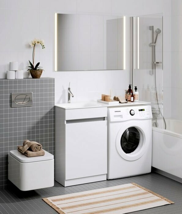 Тумба под раковину со стиральной машиной 115 см, с бельевой корзиной, белая, Aqwella Forma FOR0105KL