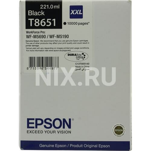 Картридж Epson T8651 C13T865140 оригинальный черный 10000 страниц для WorkForce WF-M5190 WF-M5690