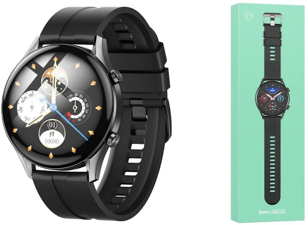 Смарт-часы Hoco Y7, 1.32", 360x360, IP68, BT5.0, 330 мАч, будильник, шагомер, чёрные