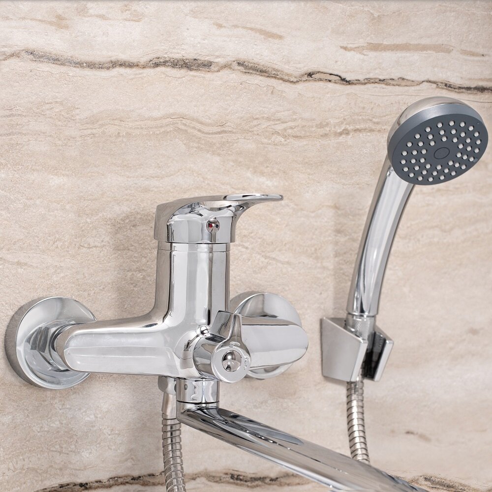 Смеситель для ванны, РМС SL55-006E, длинный поворотный излив, с душевой лейкой и шлангом, рычажное управление, гарантия 4 250 ₽ Подробнее