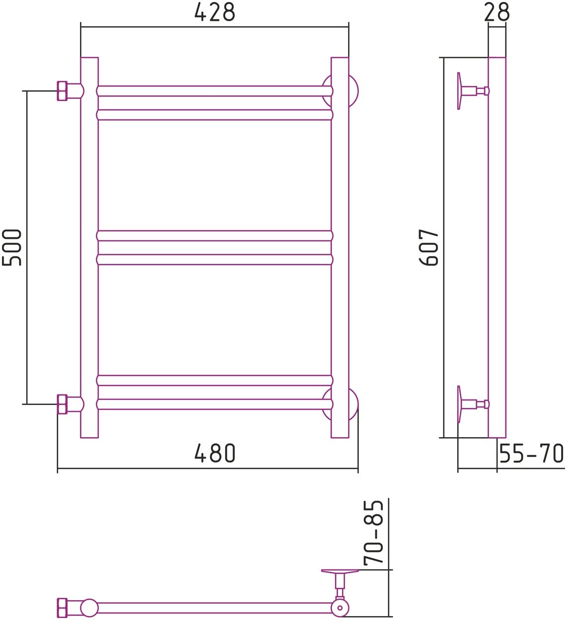 Полотенцесушители Полотенцесушитель водяной Сунержа 12611-5040 Версия-Б1 Полотенцесушитель водяной Стилье 500х400 мм (2+2+2) П 16, белый
